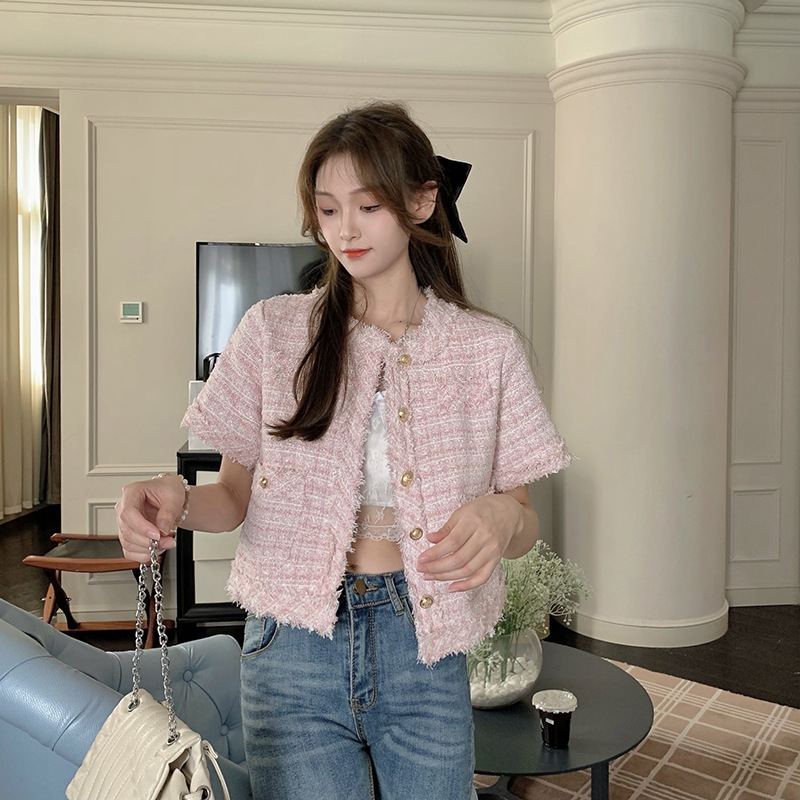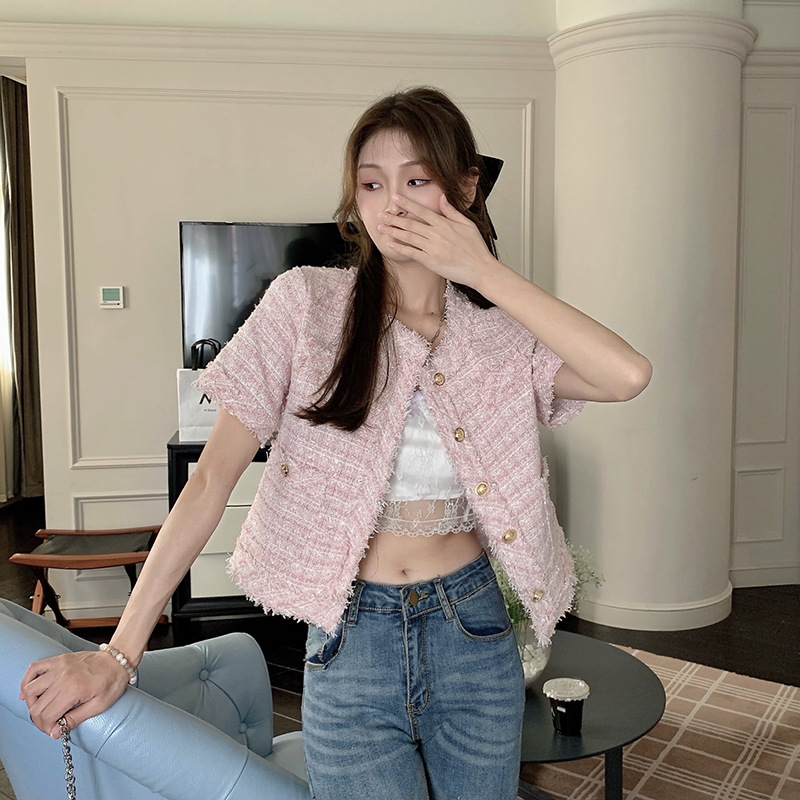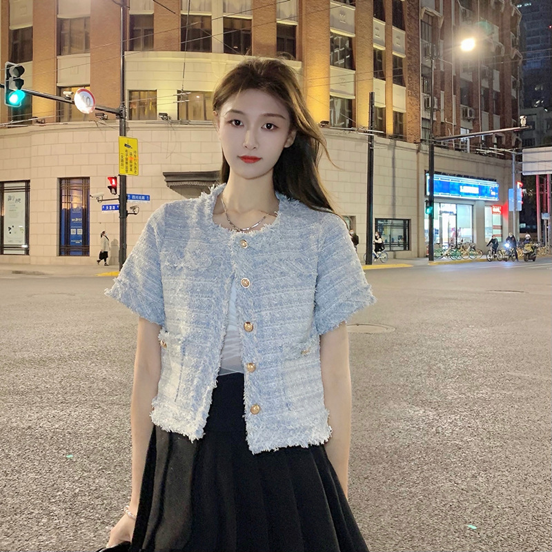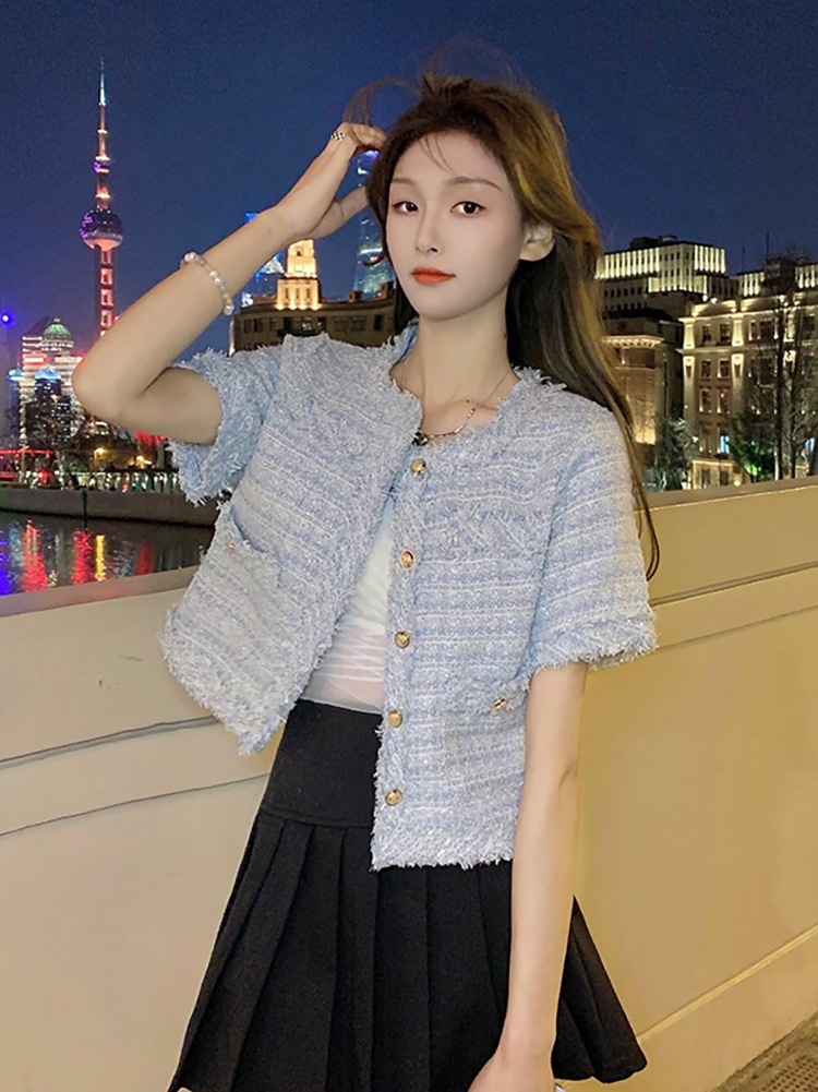 Tweed Tassel Short Versatile Loose Westernized Short Sleeved Shirt